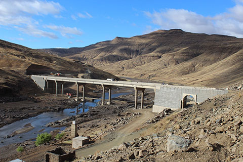 Este proyecto, situado en un lugar muy remoto, a 230 km de la capital, Maseru, fue adjudicado por el Ministerio de Obras Públicas y Transportes de Lesotho (Dirección de Carreteras). Geoquest South Africa se encargó del diseño y el suministro de materiales RE para los dos pilares Reinforced Earth®.